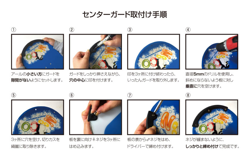 ※センターガードは板の干渉による損傷(剥離・キズ)をやむを得ず防ぐものであり、板の強度(性能)を上げるものではございません。